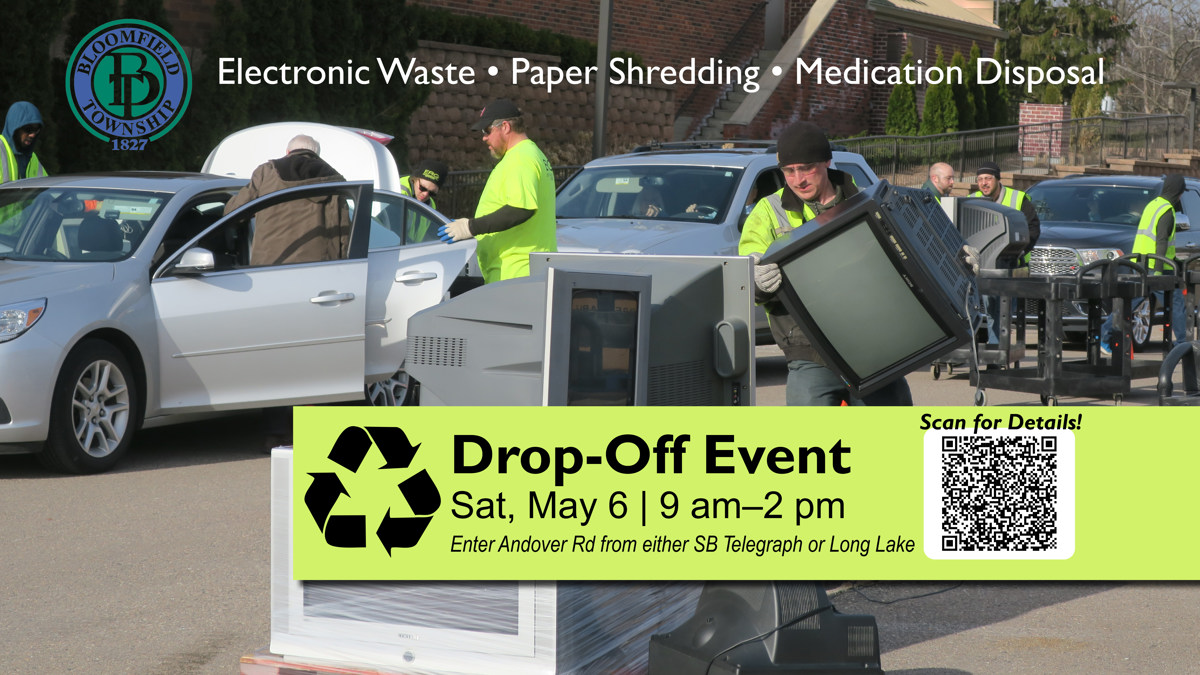 Electronic Waste Recycling, Medication Disposal and Paper Shredding will be Saturday, May 6th, from 9 a.m. to 2 p.m. On the day of the event, there will be two entrances to the event, south onto Andover Road from Long Lake Road or west onto Andover Road from southbound Telegraph. Have your ID out and ready to show volunteers. Stay in your vehicle. Volunteers will unload everything from your car.