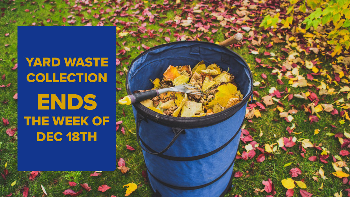 Yard waste collection service will be ending soon for the winter season. The last day to put yard waste out for curbside pick-up is your regular trash day during the week of December 18th.