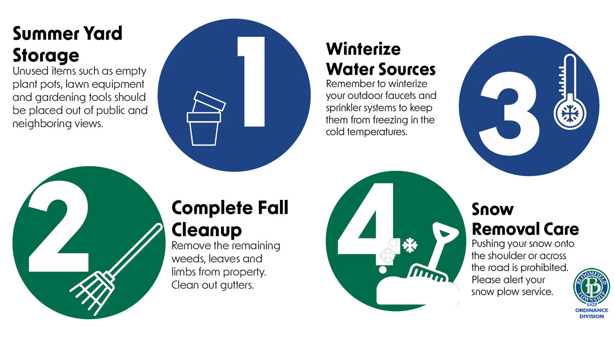 With the cold weather upon us, we would like to share these reminders about keeping our neighborhoods tidy and safe: